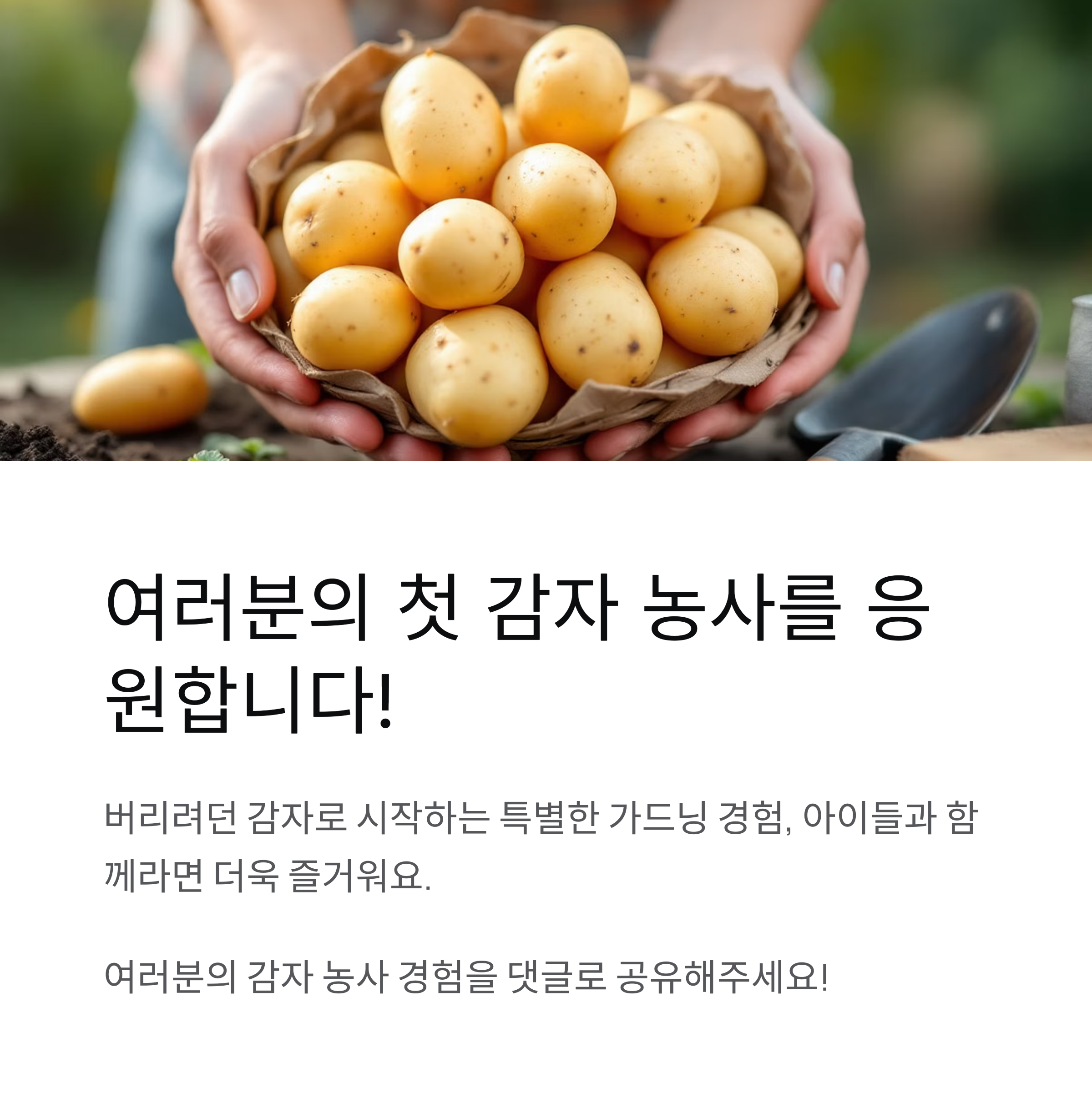 처음부터 완벽할 필요는 없어요. 저도 처음엔 많이 실패했지만, 매년 조금씩 나아지고 있답니다. 여러분의 첫 감자 농사가 성공적이길 바랄게요!