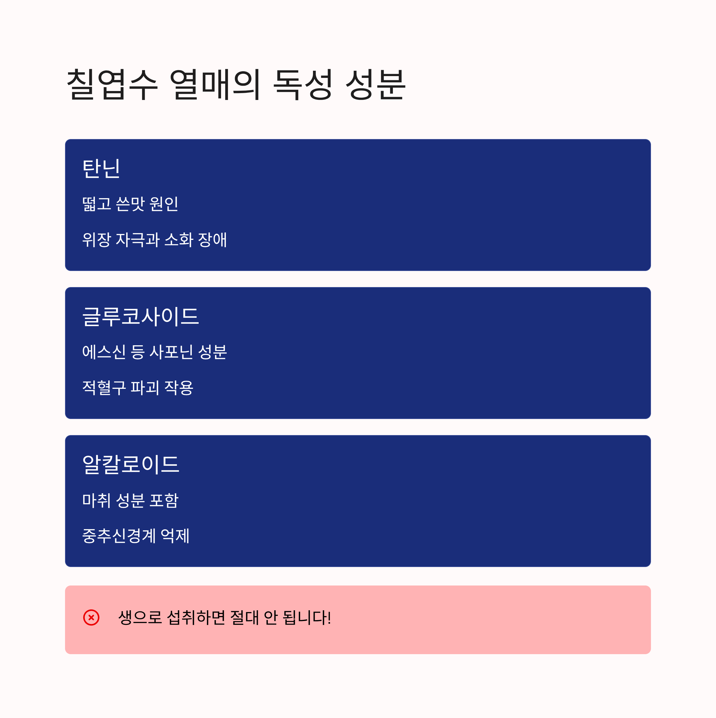 - 탄닌 외에도 다른 독성 성분 존재