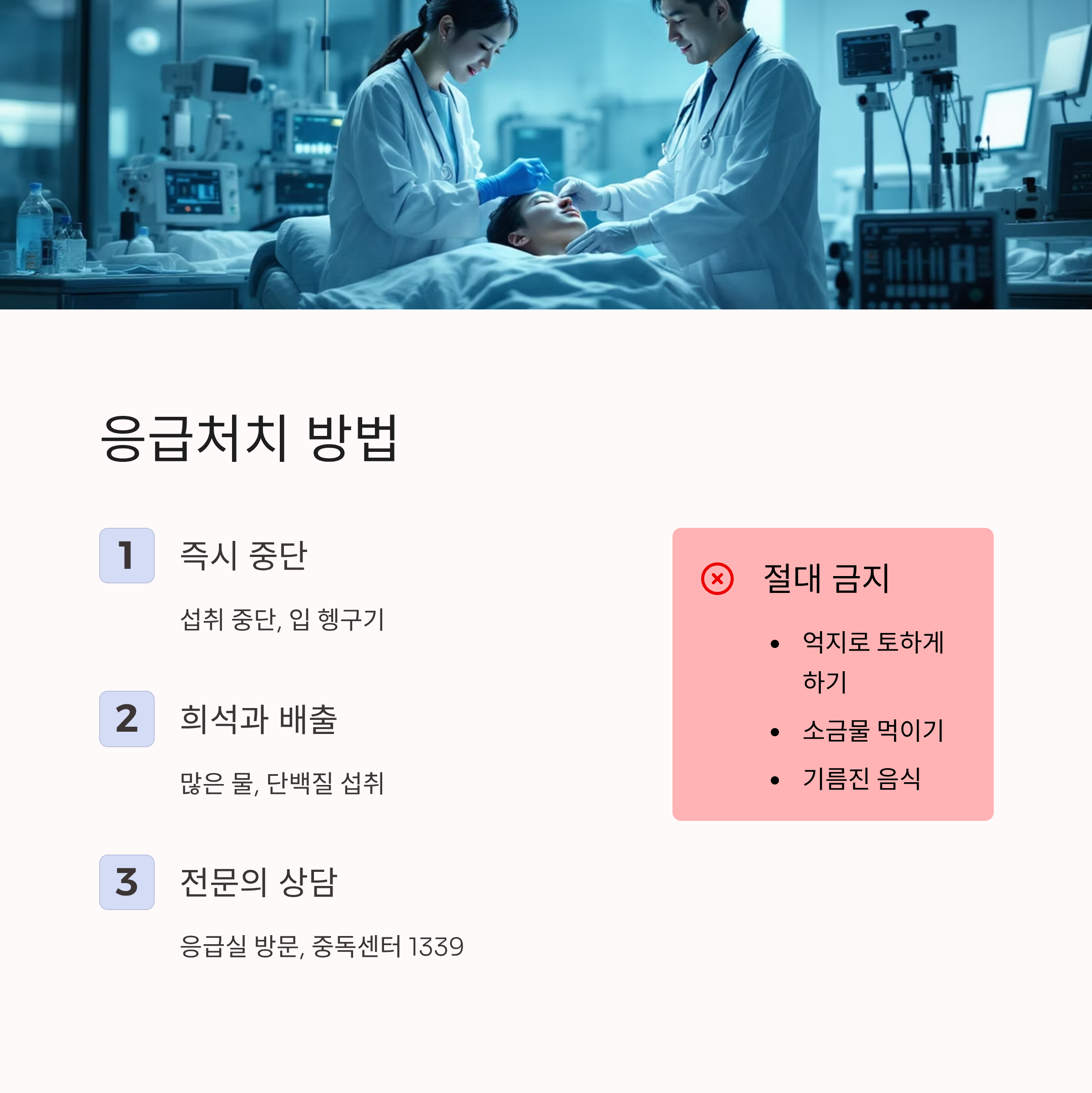 - 즉시 병원 응급실 방문